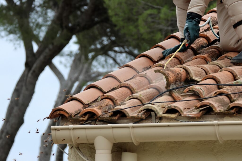 Un énorme nid de frelons européens sous toiture à été maîtrisé à Saint Raphaël.