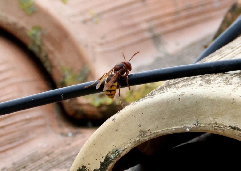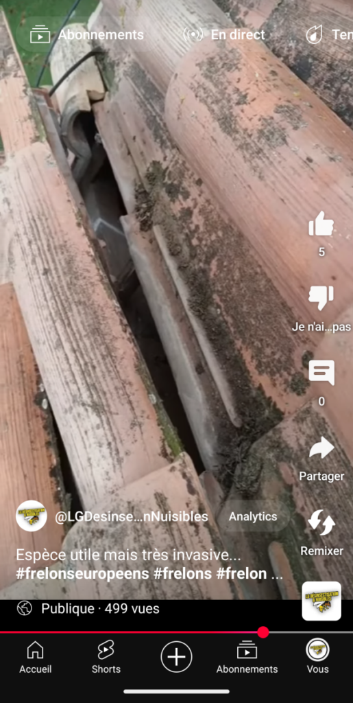 Très peu de temps après un traitement de nid de frelons asiatiques sur la propriété à côté, la société LG DÉSINSECTISATION ET NUISIBLES est intervenu pour un nid de frelons européens sous toiture.